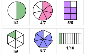 Suele utilizarse la figura geométrica (que representa la unidad) seccionada en una cantidad de partes iguales para mostrar el denominador, y se colorean (u omiten) las que se toman para distinguir la cantidad que indica el numerador.